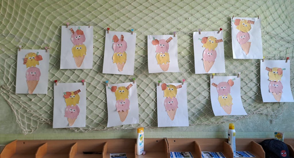 Die Vorlage kann man benutzen wenn man kein Profi ist im Malen. So vielseitig einsetzbar mit verschiedenen Materialien. So kann man jeden Sommer ein anderes Eis basteln. Danke ❤️