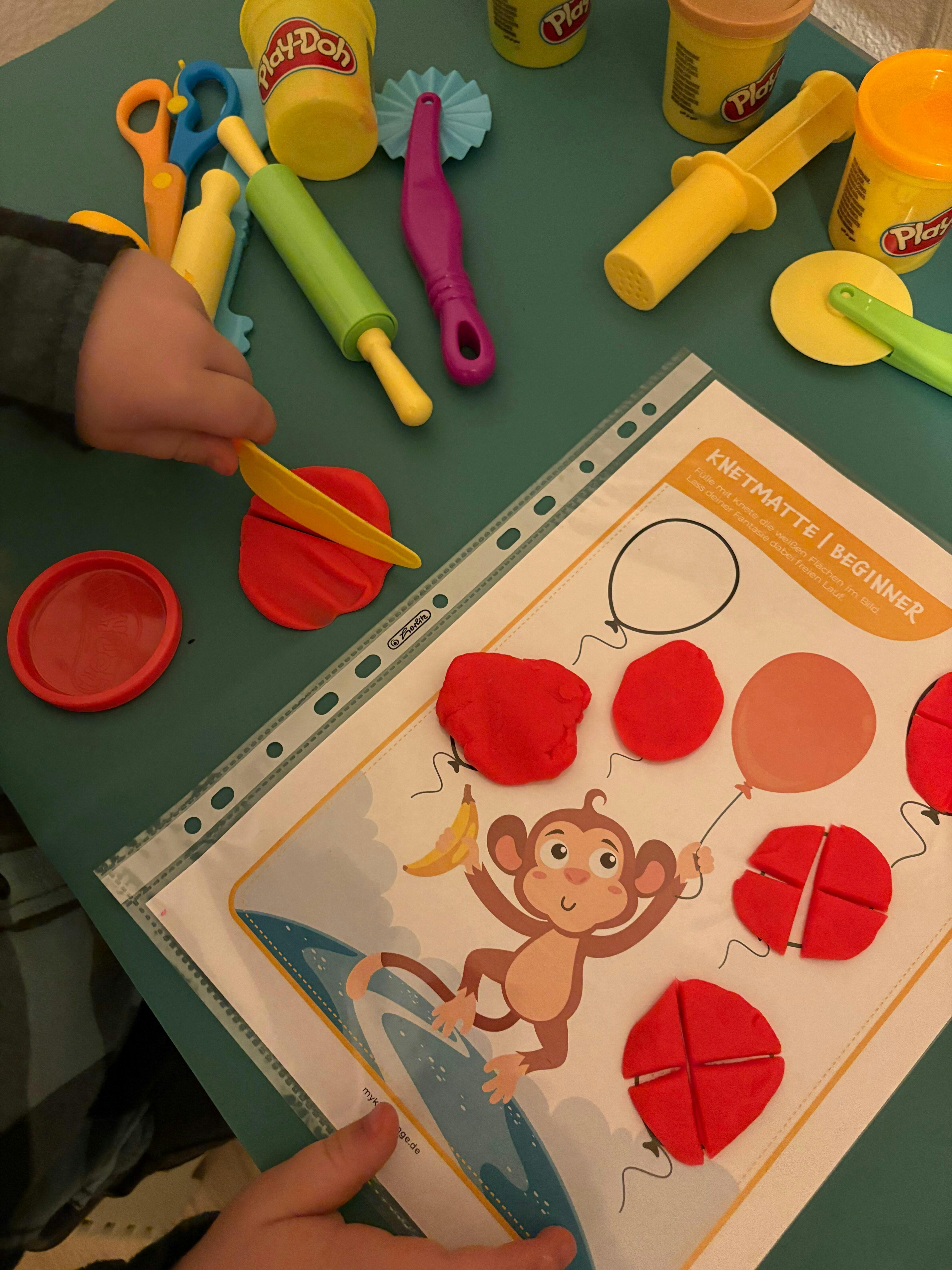 Die Vorlagen sind super süß und unsere Tochter (2,5 Jahre) spielt gerne damit! Wir mussten sie aufgrund von Ponpon-mangel etwas umfunktionieren aber mit unserer bunten Knete klappt es ebenso hervorragend. Kann es jedem nur ans Herz legen 🥰