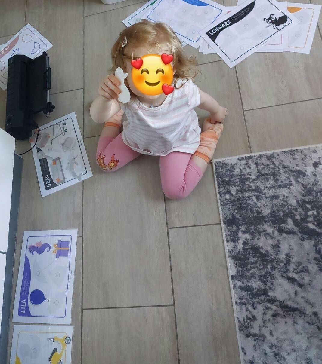 Meine 2 jährige Tochter hat beim Drucken, Ausschneiden, Laminieren und Klettklebis aufkleben auch toll mithelfen können und sie war so stolz auf sich. Nun spielt sie täglich mit so viel Begeisterung und Ausdauer damit.