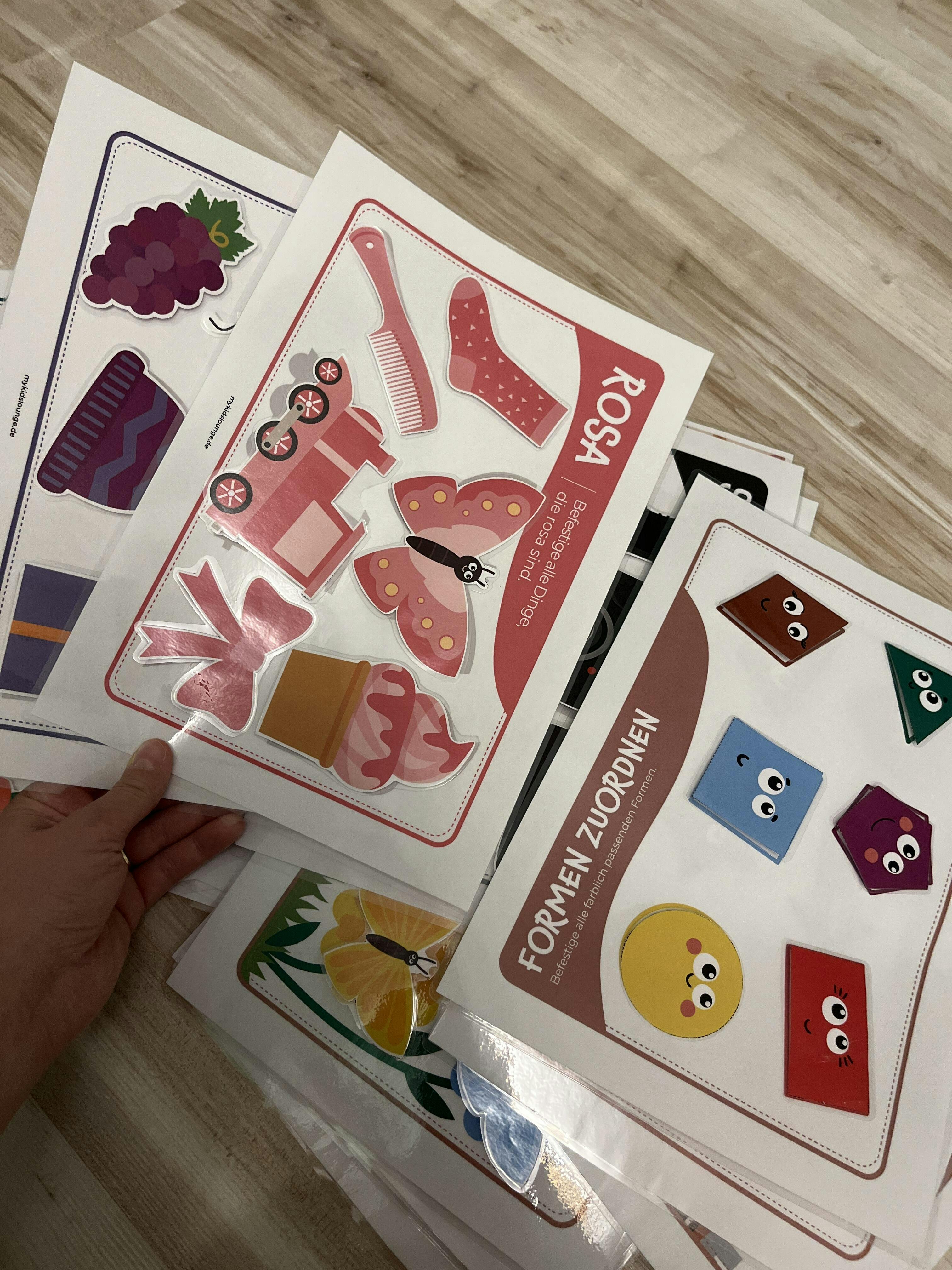Einfach ausdrucken, laminieren, ausschneiden – und schon beginnt das farbenfrohe Abenteuer! Dieses bunte und vielseitige Farbenbuch bietet nicht nur interaktiven Spaß, sondern fördert spielend Konzentration, Feinmotorik, Kreativität und Sprachverständnis.
