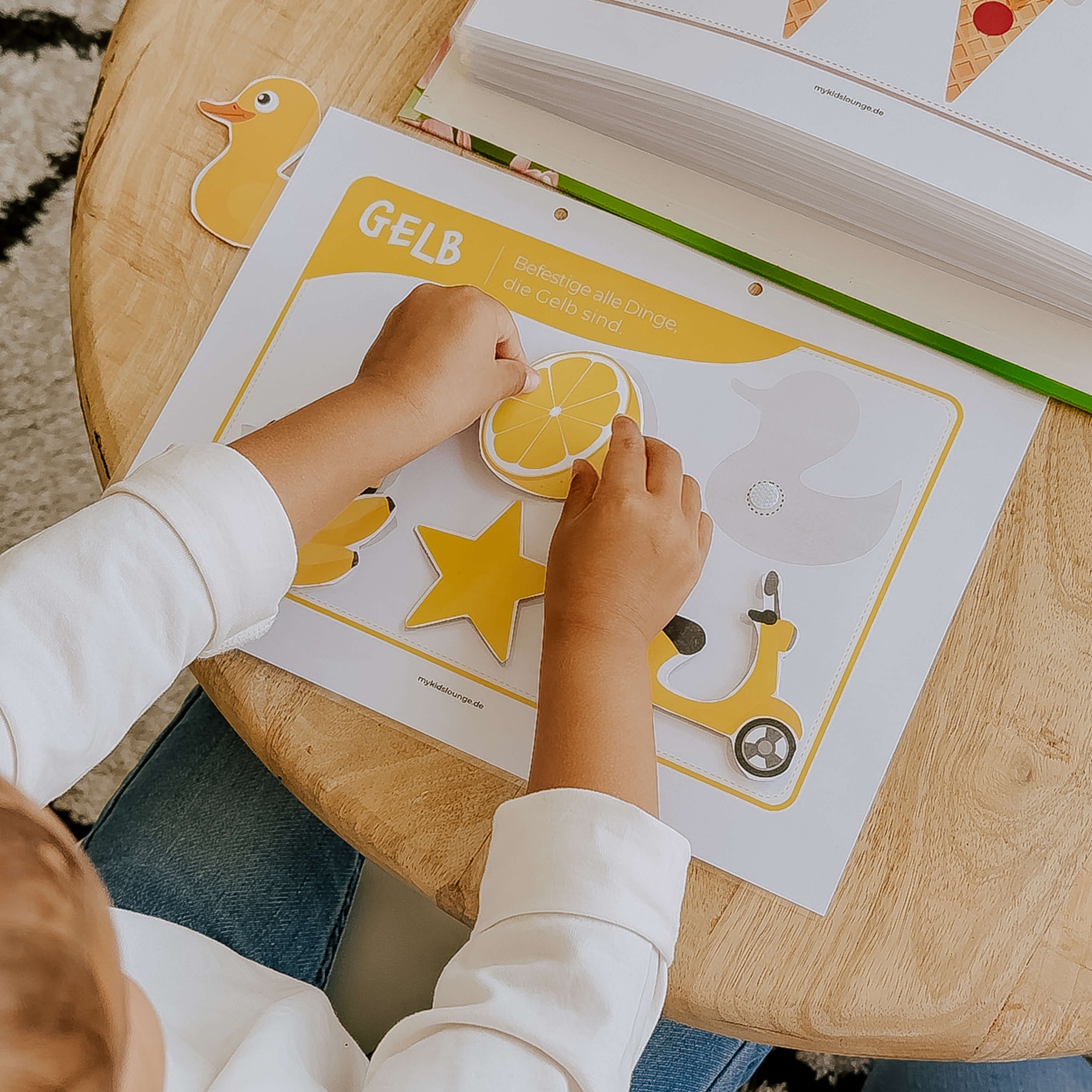 Auch die anderen Dateien wie Mama’s kleine Pause, Nachbau- und Nachlege-Vorlagen sowie die Bunte Farbenwelt sind so durchdacht. Dass man sie selbst ausdruckt und laminieren kann, finde ich super – so halten sie lange und können immer wieder genutzt werden. Ein kleiner Tipp von mir: Manche Seiten sollten nicht als Doppelseite gedruckt werden, damit alles richtig passt – so etwas kann leicht passieren, aber es lohnt sich total.