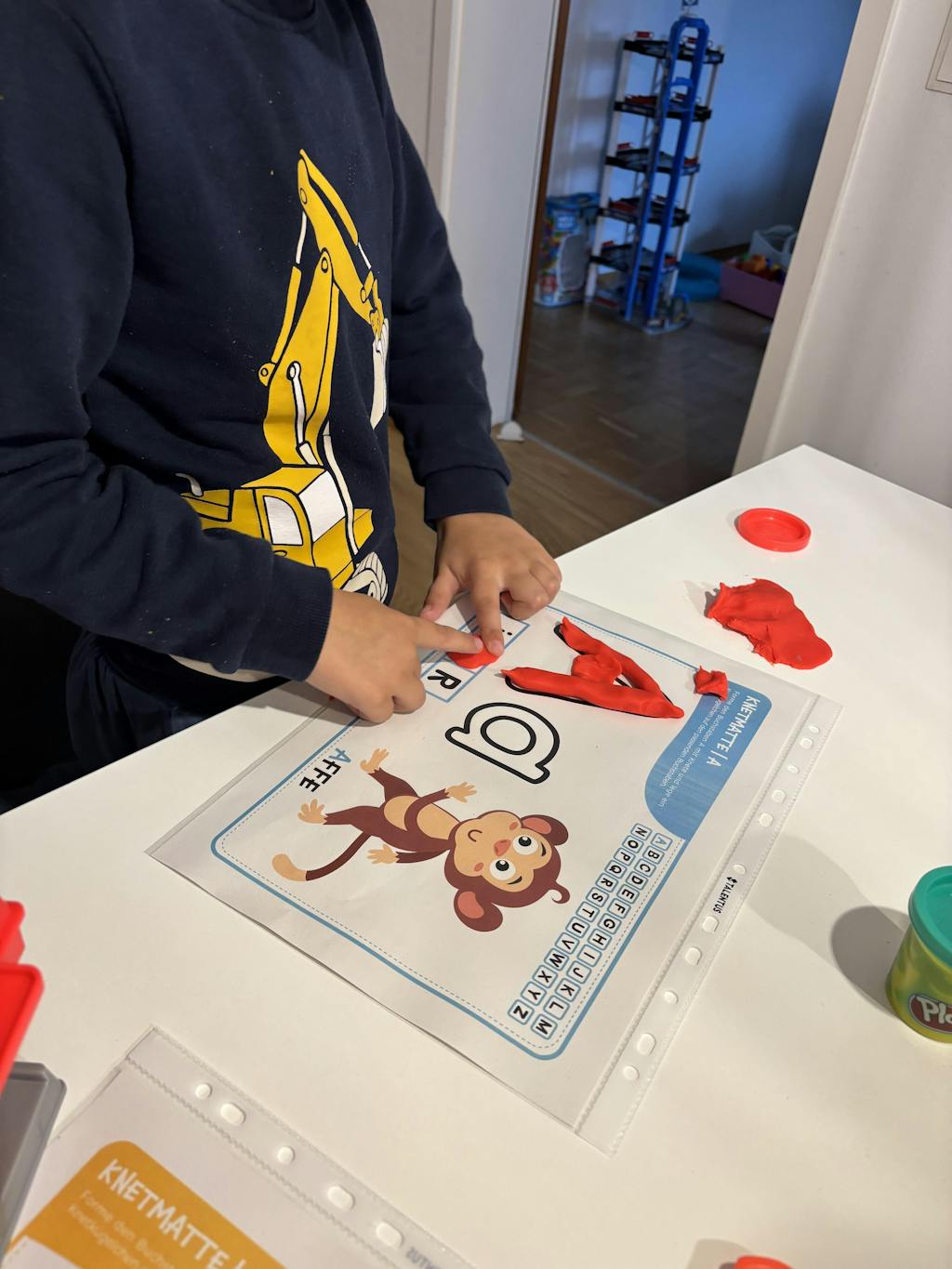 Unser Sohn hat die Knetmatten zu Weihnachten bekommen, ich habe alle Matten laminiert und neue Knete gekauft, das Geschenk war der Volltreffer 🎉 an den Feiertagen hat die ganze Familie, auch die Großeltern Buchstaben geknetet 😂 unser Sohn will immer, dass alle mitmachen.