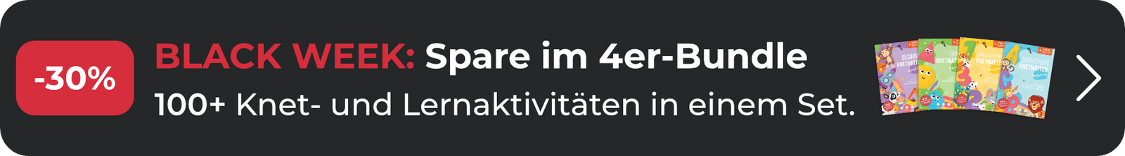 Hol dir jetzt die 31 Knet- und Lernaktivitäten und begleite dein Kind beim liebevollen Einstieg in die Buchstabenwelt – oder entdecke direkt das große 4er-Bundle mit Beginner, Buchstaben, Formen sowie Zahlen & Würfel und spare gegenüber dem Einzelkauf.